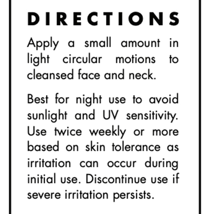 - Use twice weekly or more often based on your skin tolerance